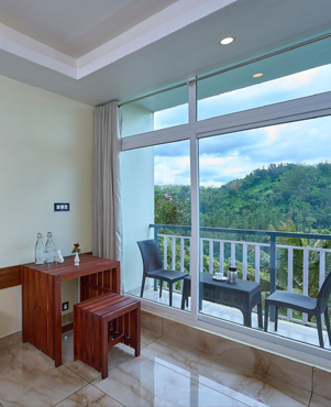 The Mountain View AC room is a stunning addition to our accommodations, featuring a private balcony that overlooks the majestic mountains. This room combines comfort with breathtaking views, making it a serene escape for guests.